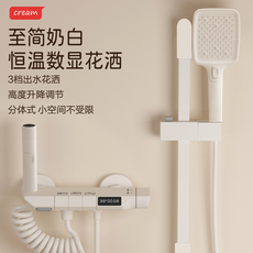 奶油风白色简易淋浴花洒套装数显屏恒温无顶喷沐浴器琴键家用增压