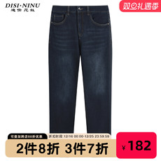 迪仕尼奴直筒牛仔裤男士秋冬宽松合体百搭弹力水洗深色牛仔长裤