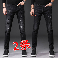 韩国复古深色紧身牛仔裤男修身小脚铅笔裤紧身秋款牛仔裤男明星款