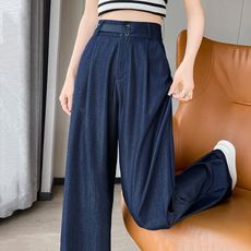 深蓝色天丝阔腿牛仔裤女新款夏季薄款高腰宽松显瘦垂感冰丝直筒裤
