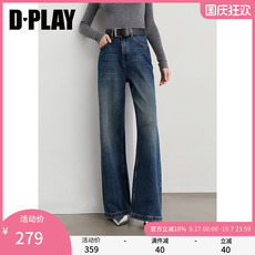 班尼路深蓝色牛仔裤春季新款慵懒风高腰宽松显高显瘦阔腿长裤女J