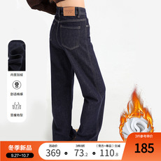 美式复古深蓝色加绒加厚牛仔裤女秋冬宽松直筒高腰显瘦窄版阔腿裤