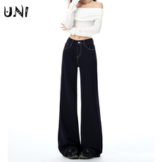 深蓝色大阔腿牛仔裤女2025年秋季新款美式高腰直筒宽松显瘦拖地裤