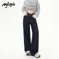 美式复古深蓝色牛仔裤女装秋季高腰宽松阔腿长裤垂感显瘦直筒裤子
