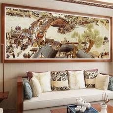 ? 已绣好的纯手工十字绣成品清明上河图满绣2米3米客厅大幅