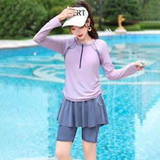 新款韩国泳衣女运动长袖防晒速干冲浪服分体平角显瘦遮肉温泉泳装