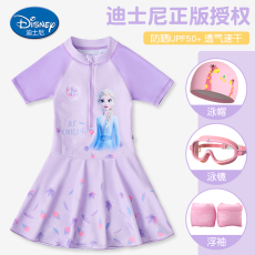 迪士尼儿童泳衣女童2025新款夏季小女孩游泳连体宝宝艾莎防晒泳装