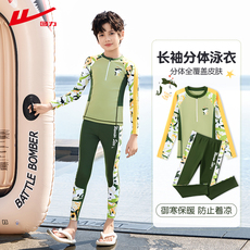 回力儿童泳衣男童分体长袖长裤2025新款保暖温泉中大童防晒游泳衣