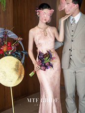 出租满庭芳【春和景明】新中式连衣裙新娘敬酒服粉色气质订婚礼服