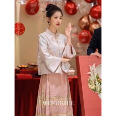出租满庭芳【喜流年】粉色马面裙套装女2024新中式国风订婚礼服裙