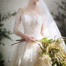 满庭芳【梦屿】婚纱小拖尾轻婚纱象牙白出门纱主婚纱出租租赁