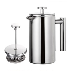304不锈钢双层法压壶滤压壶 双重过滤保温壶茶壶易清洗滤油滤渣
