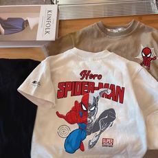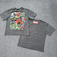 外贸 夏季水洗圆领短袖漫威卡通刺绣休闲宽松T恤男