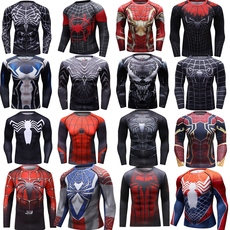 春秋超人蜘蛛侠漫威速干运动健身衣紧身衣弹力塑身贴身长袖打底衫