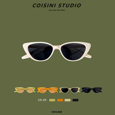 米白色复古猫眼潮人墨镜女街拍ins高级感显脸小百搭遮阳太阳眼镜