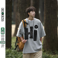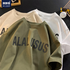 oversize字母短袖T恤男加肥加大码潮流胖子宽松日系休闲夏装学生