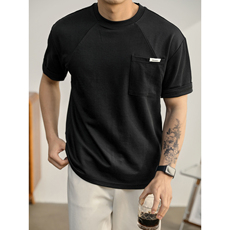 LUUD 男士高街痞帅黑色落肩短袖T恤夏季潮流小贴袋亲肤棉体恤上衣
