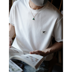 日系简约基础款爱心刺绣纯色短袖T恤男夏季潮流新款时尚轻奢体恤