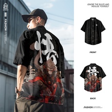 男士纯棉短袖衬衫夏季薄款宽松休闲上衣潮流百搭日系复古衬衣半袖