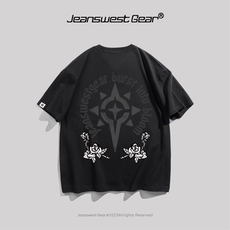 JG男装大码品牌美式玫瑰花太阳英文落肩短袖t恤男女oversize潮流