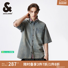 杰克琼斯男装秋季新款百搭宽松翻领潮流舒适百搭中蓝牛仔衬衫短袖