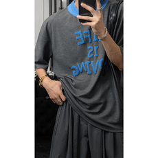 MRCYC夏季薄款翻领针织短袖男士宽松Polo衫短T韩系潮流五分袖T恤