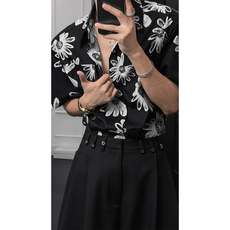 龙叨叨夏季新款潮流复古港风沙滩满印花卉百搭宽松短袖花衬衫