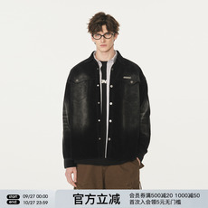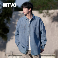秋季美式复古水洗潮牌牛仔衬衫男宽松休闲长袖衬衣男士工装外套潮