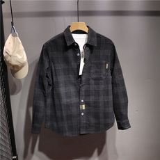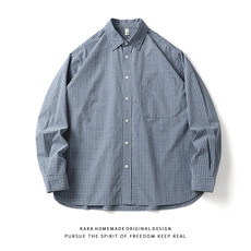 NineteenAutumn秋季美式复古长袖衬衫宽松潮牌日系基础格子衬衣男