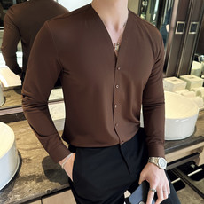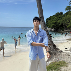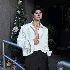 杨一帆潮牌长袖衬衫男士2025春季新款时尚翻领宽松ins设计款衬衣