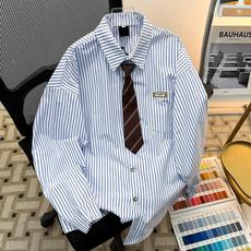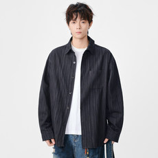 条纹衬衫男士春秋季2023新款潮牌痞帅休闲宽松外套翻领长袖上衣服