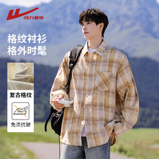 优雅汗鹿美式复古格子衬衫男新款潮牌百搭宽松休闲长袖衬衣外套男