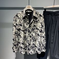 2023夏季新款男士加大码长袖防晒印花衬衫炸街港风痞帅舒适衬衣潮