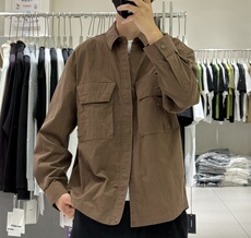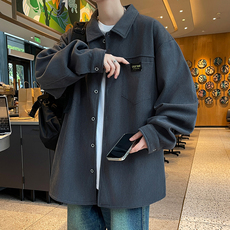 MEMZ秋季港风宽松经典方领长袖衬衫潮牌简约绣标灯芯绒纯色衬衣男