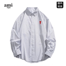 LAMLICKA潮牌拼接撞色条纹衬衫男秋季设计感美式宽松长袖衬衣外套