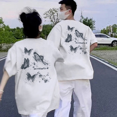 国潮牌立体蕾丝蝴蝶刺绣短袖t恤女夏情侣装宽松休闲美式半袖上衣