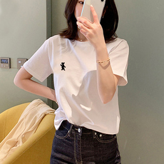 国潮牌苹果小猫刺绣正肩纯棉短袖t恤女夏新爆款情侣超火减龄上衣
