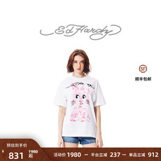 YEP复古白色印花t恤女2025新款夏季潮牌纯棉短袖上衣宽松百搭半袖