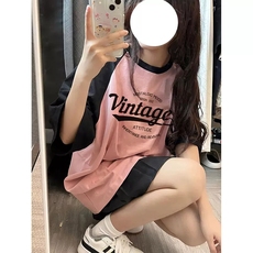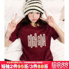 NR真维斯女装火龙果色短袖t恤夏季新款潮牌印花宽松百搭休闲上衣