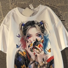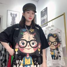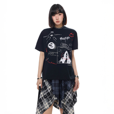 美式纯棉ins国潮牌印花卡通短袖T恤女夏季hiphop嘻哈重磅宽松上衣