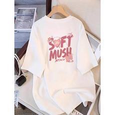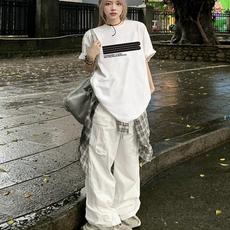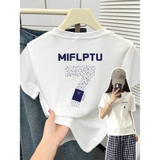 2025夏季潮牌白色纯棉短袖T恤女大码高中生宽松圆领字母印花上衣