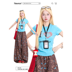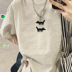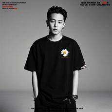 国潮牌短袖小雏菊腊肠狗印花夏季圆领纯棉金高银同款宽松T恤女CX