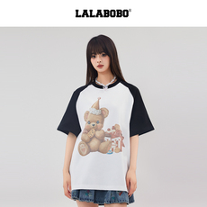 【商场同款】LALABOBO25年T恤夏新款女原创潮牌渐变印花短袖上衣