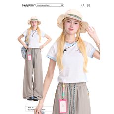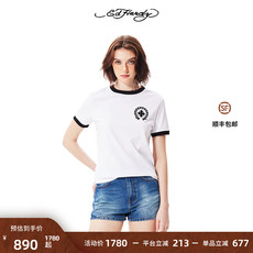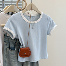YD真维斯女装2025夏季新款 潮牌时尚撞色百搭插肩袖纯棉短袖T恤