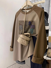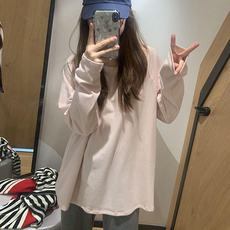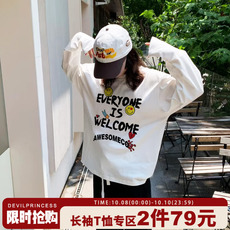 国潮牌美式高街烫钻字母印花长袖t恤女秋季内搭宽松休闲打底上衣