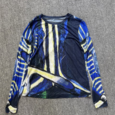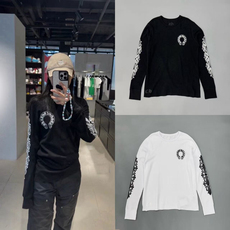 2025新款秋季潮牌梵文字母印花马蹄十字花臂纯棉男女款长袖T恤