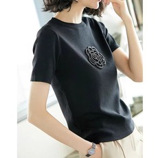 美式高街刺绣花卉潮牌灰色短袖t恤女夏2025新爆款简约超好看上衣