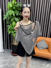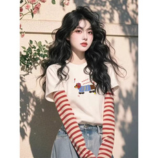 卡通印花条纹短袖t恤女2025新款夏季美式潮牌宽松慵懒风休闲上衣