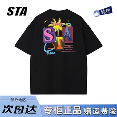 STA旗舰店美式旗帜印花男女短袖潮牌重磅纯棉情侣宽松学生圆领T恤