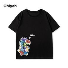 ulzzang小众卡通ins潮牌黑色短袖t恤女2025年新款宽松半袖上衣潮